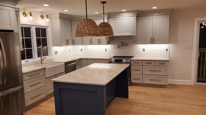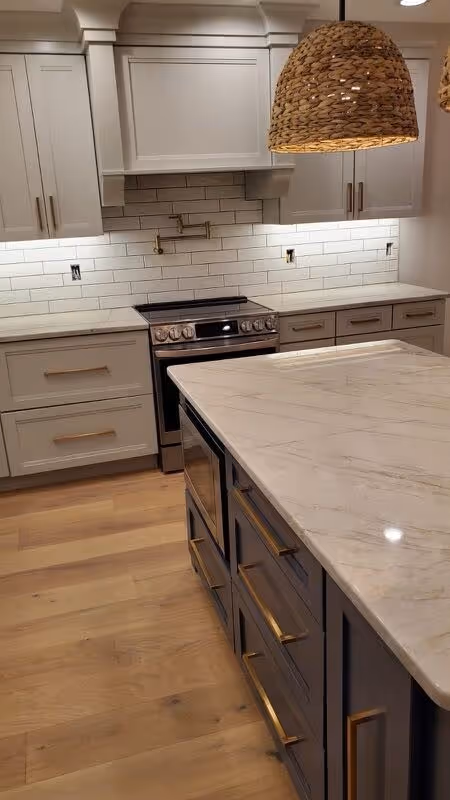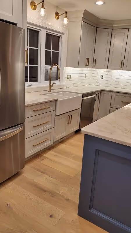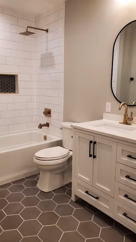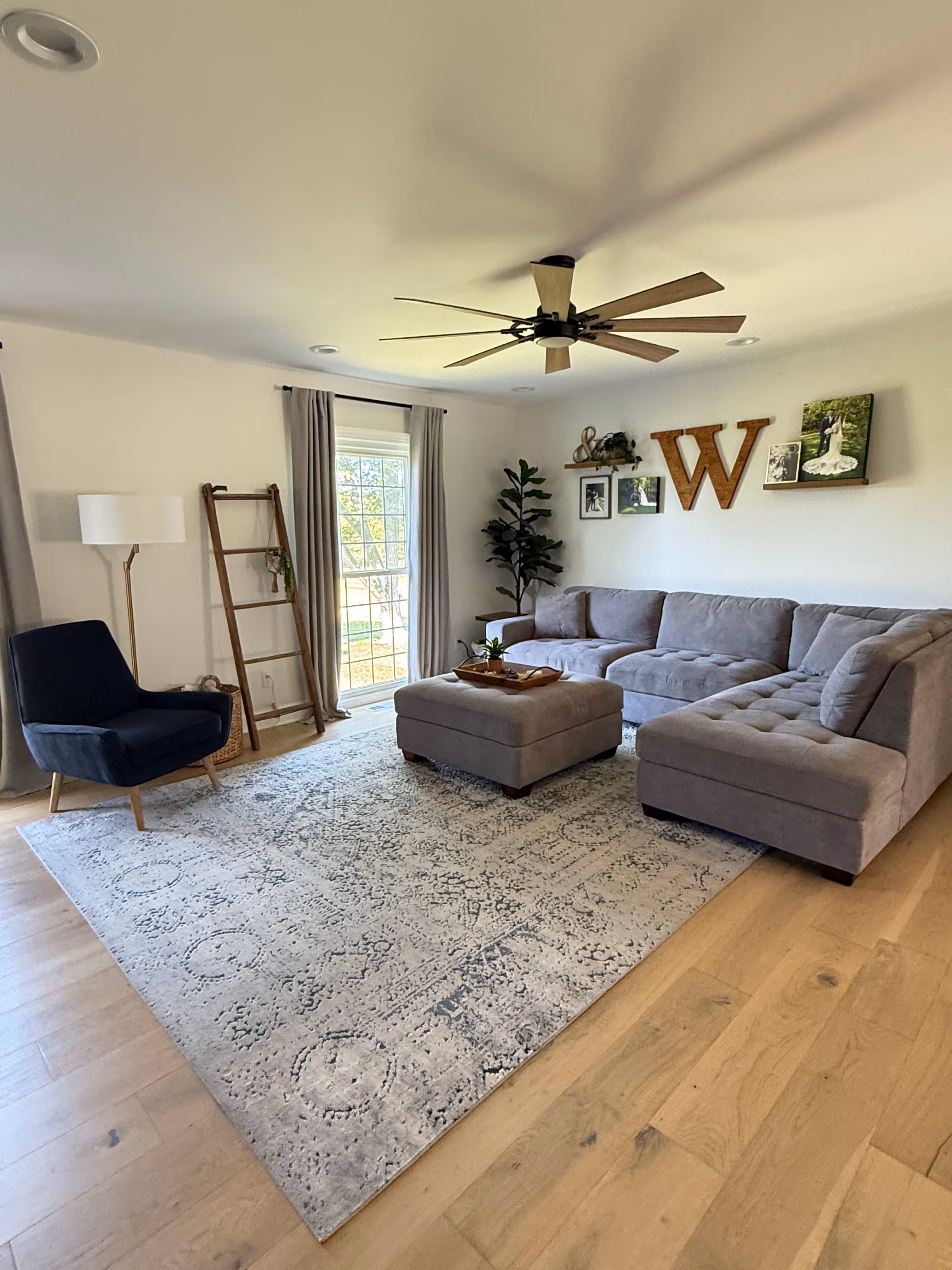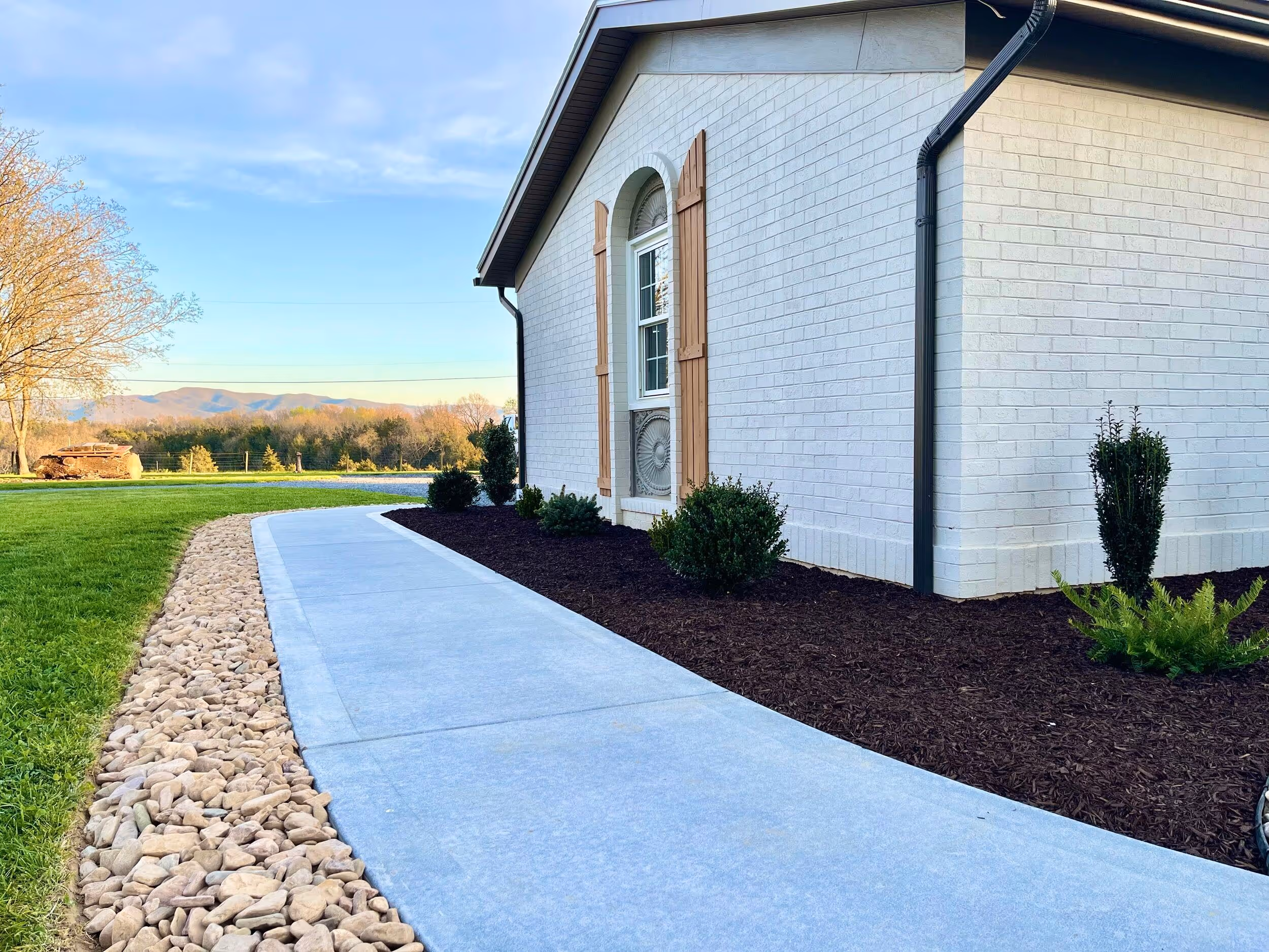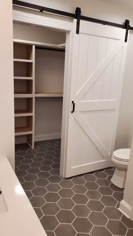 California Ranch-style home with modern farmhouse finishes. Beautiful entryway, flowing straight into open concept living room space with kitchen and dining room separated by on trend white brick fireplace. 4 bed, 3 bath on first floor. Spacious primary bathroom featuring tile floor and shower and an ample and extremely functional walk-in closet to one side.